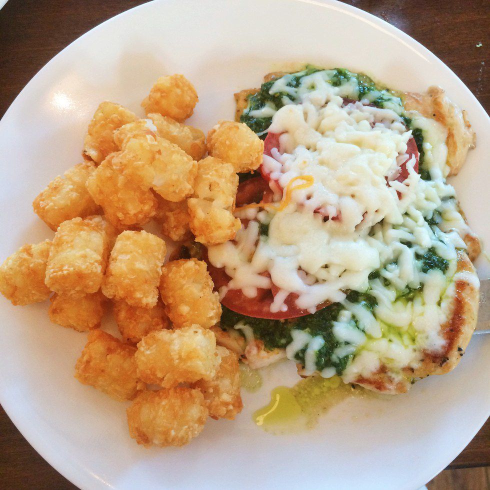 This is by far my favorite chicken dish out there. One of the cool things about the chicken at Flipside is that you can get it fried and crispy or pan sauteed. I don't like breaded chicken, so I like that I can avoid that. This chicken dish in particular is smothered with a fresh, herby basil, topped with thick slices of tomato and then covered in mozzarella that melts over the top to cover it all.