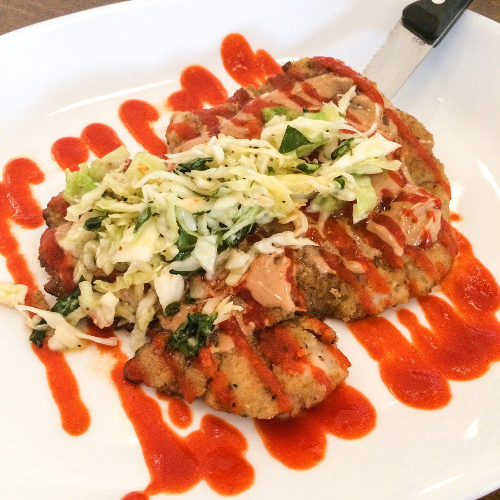 This is not my go-to, but it is one of the most unique chicken dishes I have ever tried. Their normal butterflied chicken breast is slathered generously with creamy peanut butter. A handful of light and fresh Thai slaw is placed on top and splashed with Sriracha. Peanut butter on chicken sounds crazy, but trust me, the way that these flavors and textures play together is incredible. The Sriracha is intensely spicy, but the smooth peanut butter mellows it out, and the slaw adds a refreshing aftertaste.