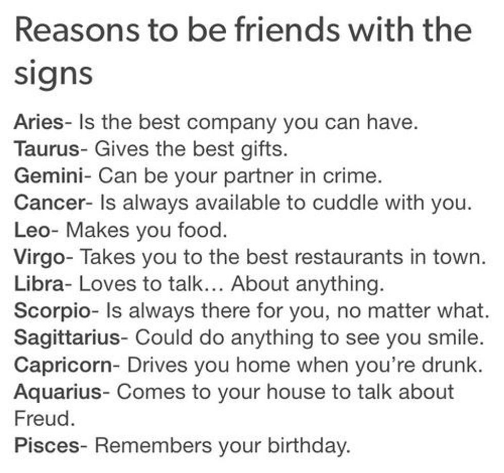 Social media sites, like Tumblr, have began to take zodiac signs and assign things such as what the sign is most likely to do, what the sign is most likely to say, etc. Although these lists may not have much scientific backing to them, it doesn't stop people from exclaiming "That's sooo me" or "That's totally you; you're such a Taurus!" when they read them.