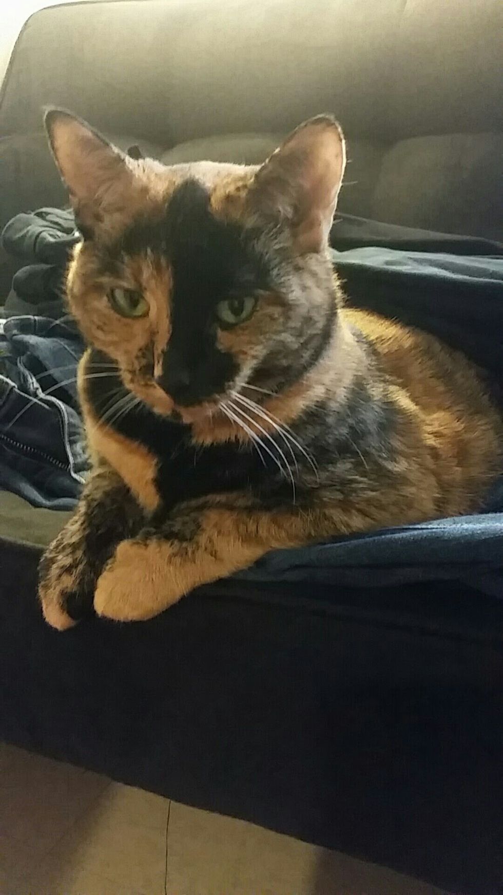 In December 2017, I had three girls over. Two girls from Africa and one from Jamaica. We were in the dining hall when one of the girls from Africa mentioned that she wanted to pet my cat. She was always mentioning how she wanted to come over to meet her. So I said why don’t you guys come over and meet her. My friend was excited until she got to my room, at which point she became terrified. The other girl from Jamaica also was in the same state of mind. They treated my overweight torti like she was a fierce lion. We walked into my room and Addie was on the couch.