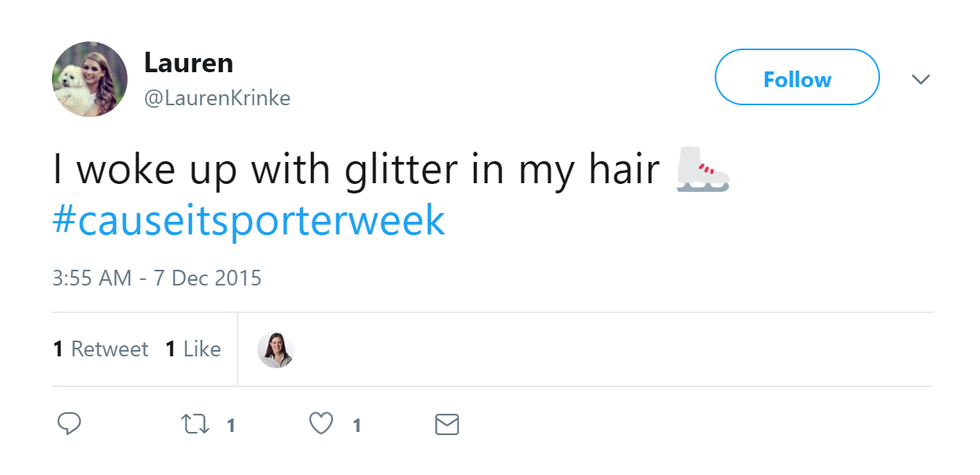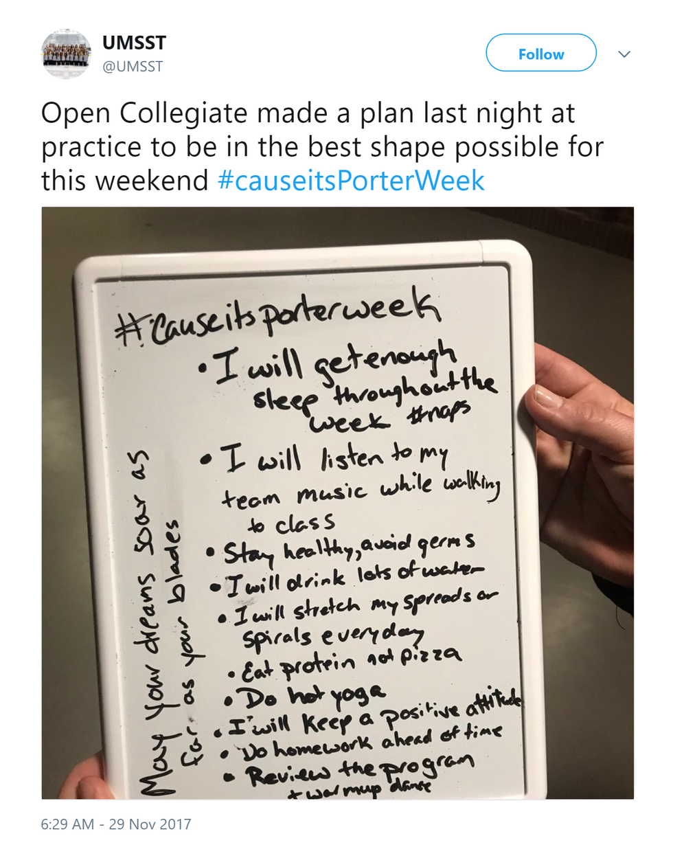 So why is #CauseItsPorterWeek a thing? Since this competition is so cut throat, the week going into it can be very stressful, and there are always things going on; thus the hashtag was born. It has become a staple in the synchro community, to use this hashtag when pretty much anything happens during the week before this competition.