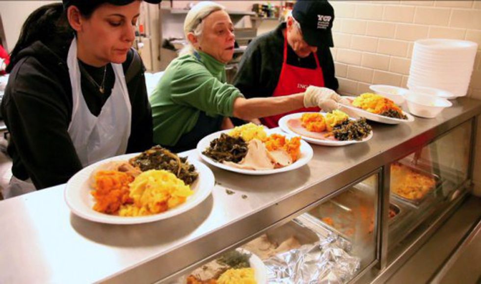 Thanksgiving is a really popular day for giving back. Many people volunteer, particularly at homeless shelters and soup kitchens. If you are in New York City, you can try FeedingNYC's program or the listings at New York Cares.