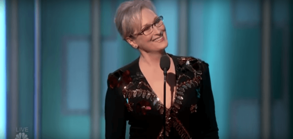 "Where are their birth certificates?" Streep flippantly questioned as crocodile tears rose in her mascara-laden eyes. Obviously, if you live in Hollywood, it's a requirement that you force your hatred of Donald Trump on everyone, through whatever means necessary. For Meryl, bringing up our former president was the perfect segway into her bash on Trump and all of his supporters.
