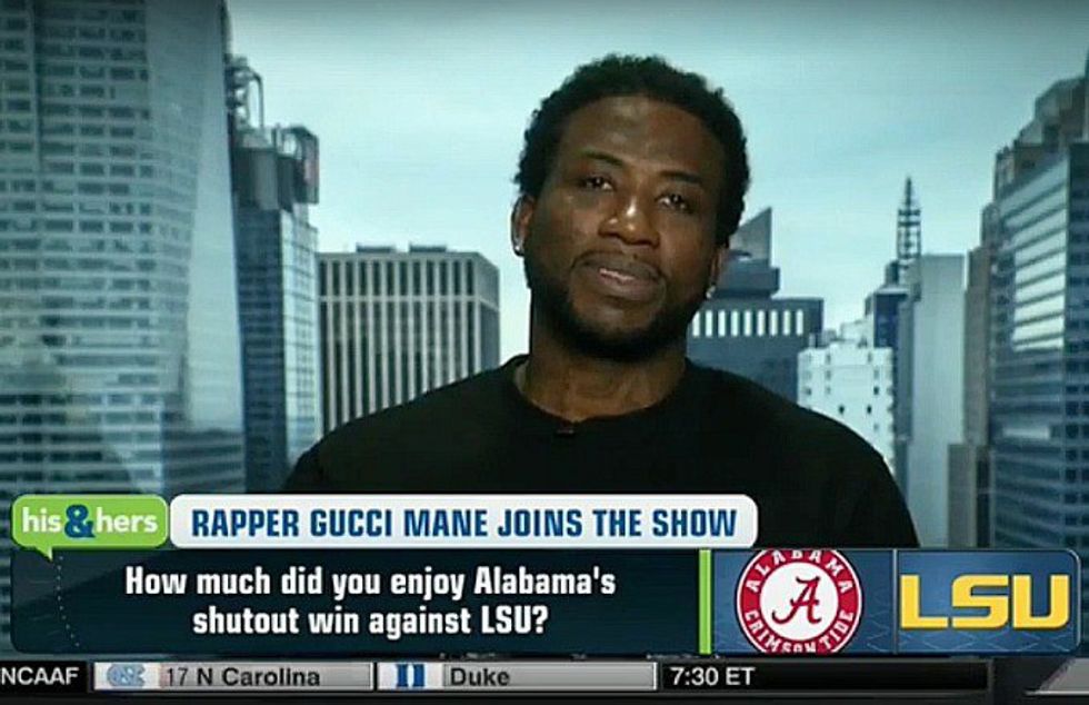 Gucci Mane was born in Bessemer, Alabama. He was recently on ESPN's "His or Her's" on 11/10/2016 and interviewed about multiple subjects including the LSU/Alabama game. He has always claimed to be a fan of the Alabama Crimson Tide, Atlanta Hawks, and the Atlanta Falcons.