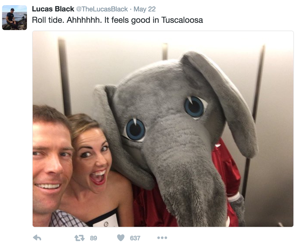 The Alabama Crimson Tide has variety types of people in their fan base as we know it. You may think you are the biggest tide fan there is out there, but you might have some competition out there. With many types of people coming to Tuscaloosa ever Saturday in the fall for football games, celebrities might be included in that pack... or just cheering along with the hashtag on social media. It all matters. I have come up with a list of celebrities that have come out to the world that they are firm Tide fans: