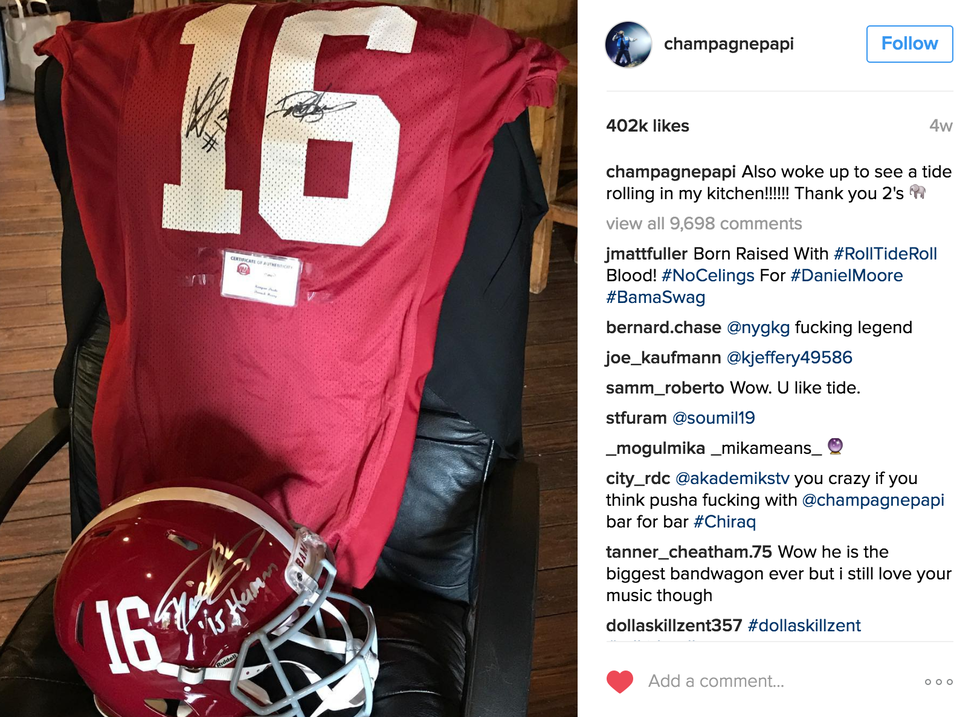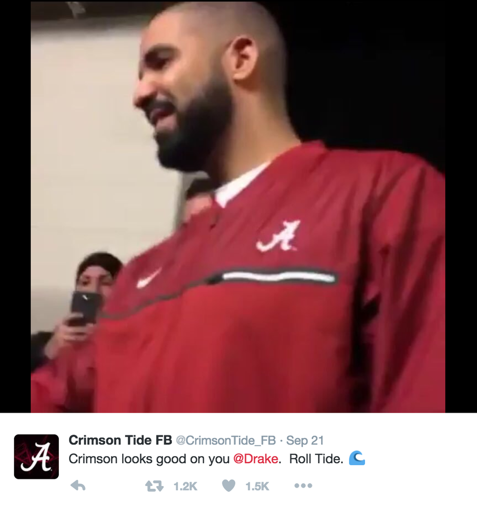 ???? 12. (Probably shouldn't even number him) Even Rapper Drake Wants to Roll with the Tide