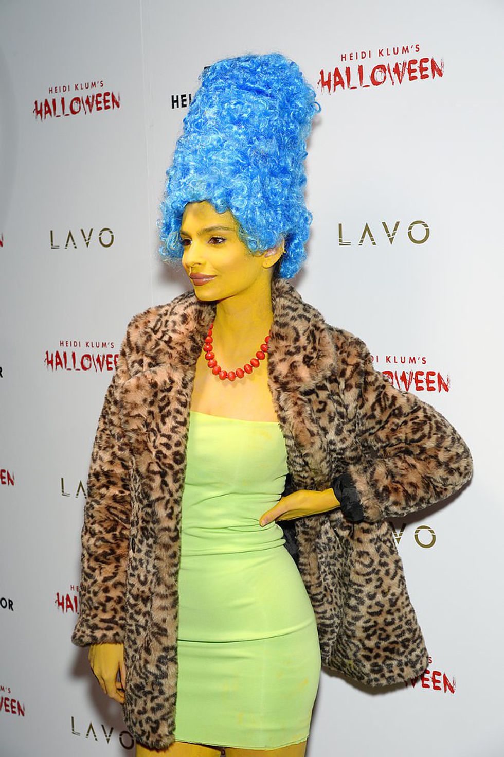 "The Sports Illustrated" model and "Blurred Lines" girl Emily Ratajkowski made the crowd laugh with her classic Marge Simpson costume. With just a little yellow body paint, a blue wig, and some staple closet pieces, this is a costume that almost anyone can manage.