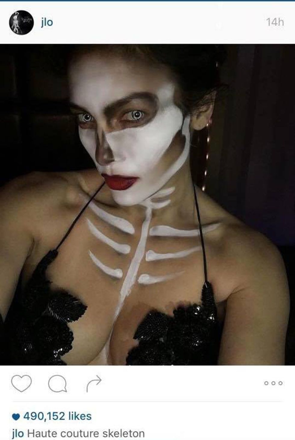 Leave it to Jennifer Lopez to make scary sexy. Spotted at Heidi Klum's annual Halloween Bash with Casper Smart, the creepy pair rocked what they like to call "haute couture skeleton" -- note taken. Hello, contour.