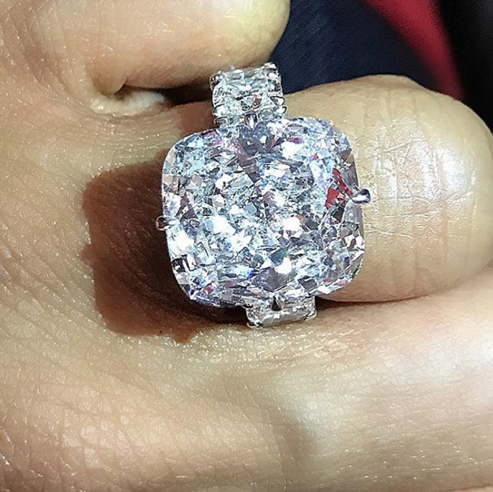 Graff cushion-cut diamond has a triple band and is around 4-carats in size.