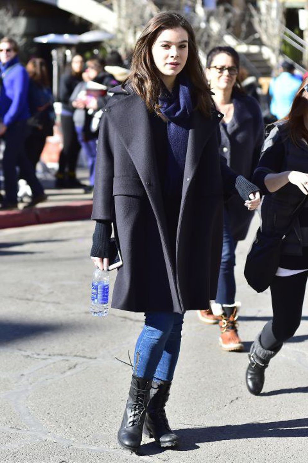 Hailee Seinfeld looks awesome in her statement jacket that also keeps her super warm. A simple outfit that still looks awesome.