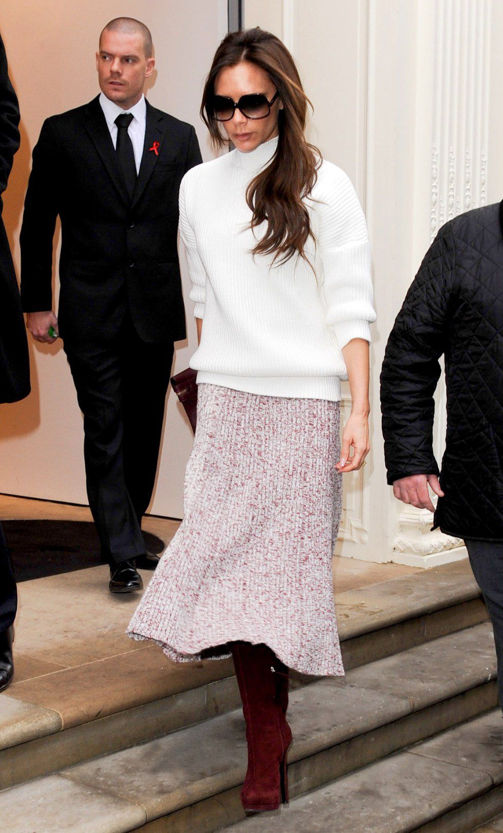Victoria Beckham shows the more dressy side of winter wear. This would be the perfect outfit for a date night or a night with the girls. The boots are perfect with the long skirt and turtleneck sweater.