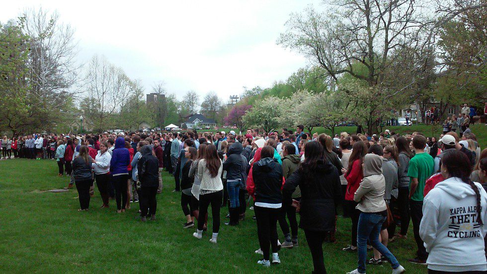 Hundreds of people gathered inside the union before the ceremony started, with lines stretching back past Whittenberger auditorium. As the ceremony began and people made their way inside, the room reached capacity. Many were unable to be inside, including The Odyssey. The door to alumni hall was slightly open, but nothing could be heard from outside.