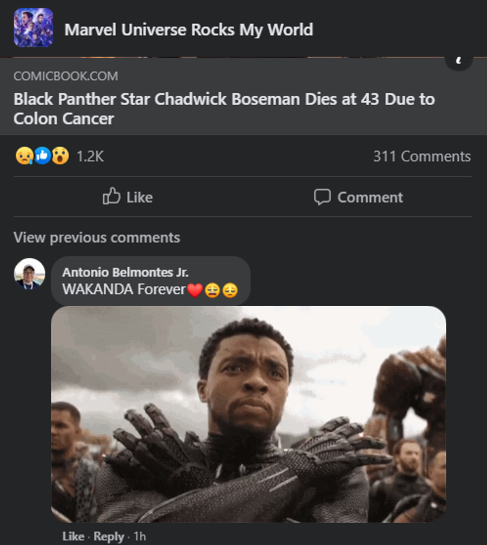 My deepest condolences go out to Boseman's friends, family, and loved ones. I know that you'll be flooded with love and well-wishes and that the MCU (and DC) will stand behind you all during this difficult time.