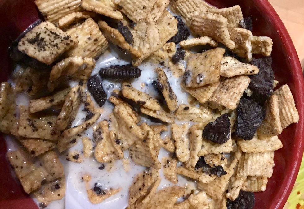 Although I never ate sausage before I became vegan, the field roast brand vegan Italian sausages have become a staple in my fridge. I sauté red, orange, and/or yellow peppers with onions and sometimes mushrooms, and add the sausages to the mixture. When done, I add the veggies and meat to a hot dog bun and top it with Dijon mustard. For dessert, I toss crumbled Oreos into a bowl of cinnamon toast crunch in almond milk to add some pizazz to a late-night cereal binge.