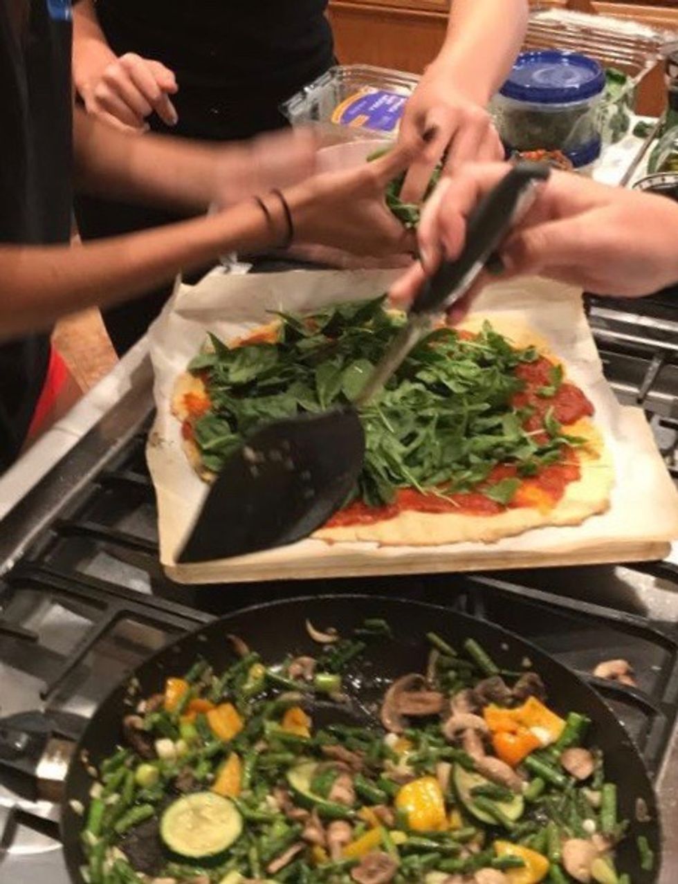 A classic pastime in my home, I brought the tradition of breakfast for dinner to my college peers. With a large group we make breakfast potatoes, a tofu scramble, vegan breakfast sausages, vegan eggs, and avocado toast topped with tomatoes and olive oil. I make the tofu scramble with lots of veggies and spices, and the vegan eggs are surprisingly delicious despite their funky smell and odd powdered consistency before cooking. For dessert, I pop frozen vegan waffles from Trader Joes in the toaster and top them with maple syrup and fresh berries. I have also instead topped my waffles with butter and jelly, and sometimes Trader Joes cookie butter.