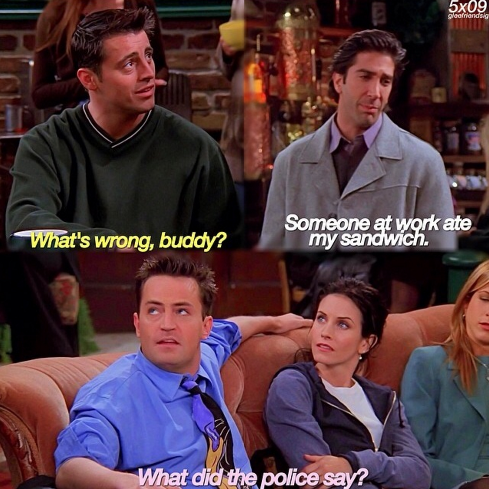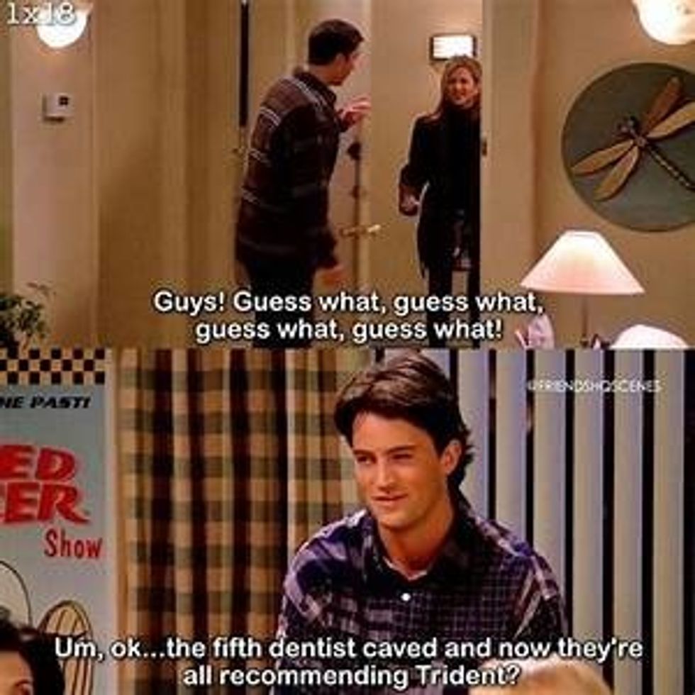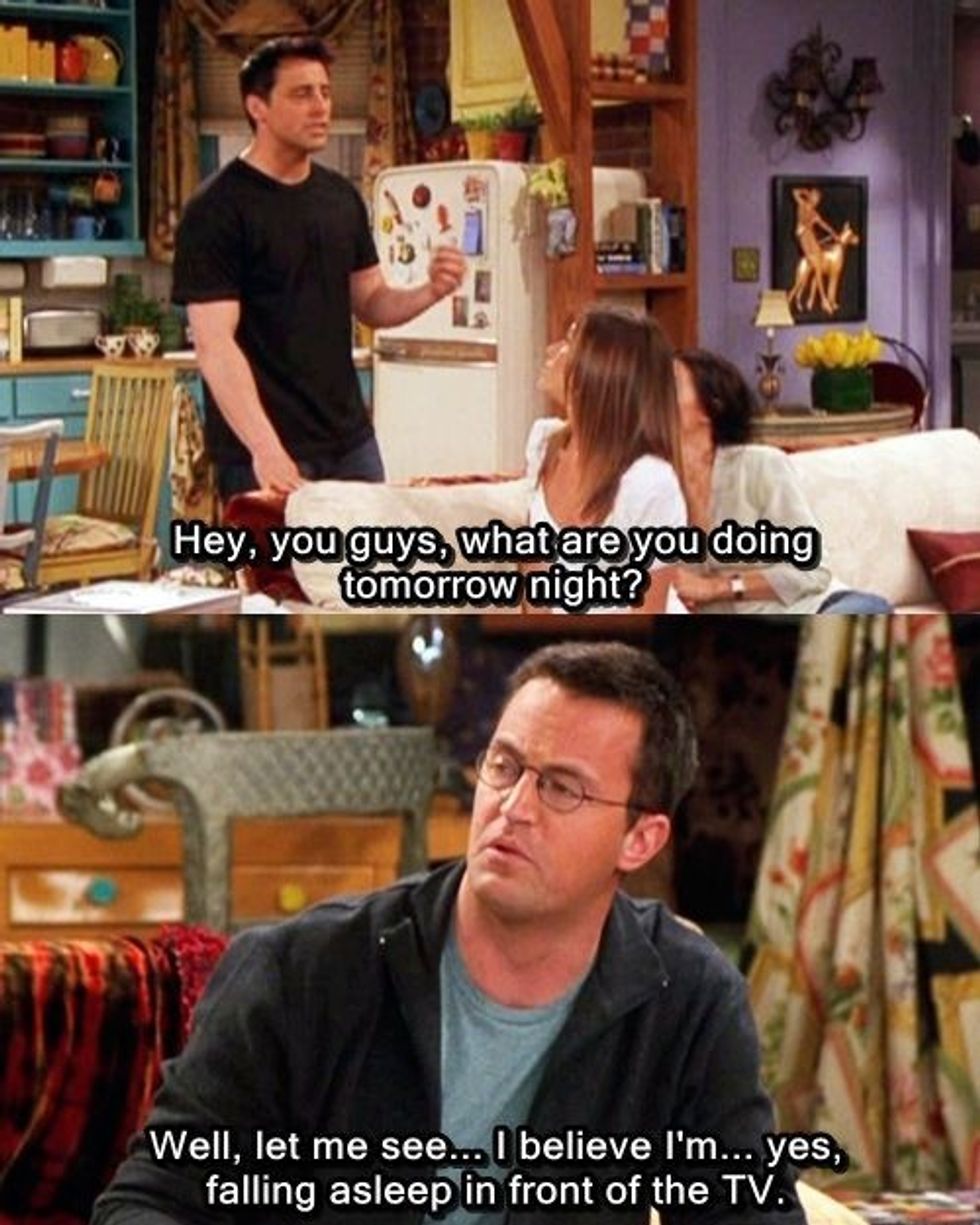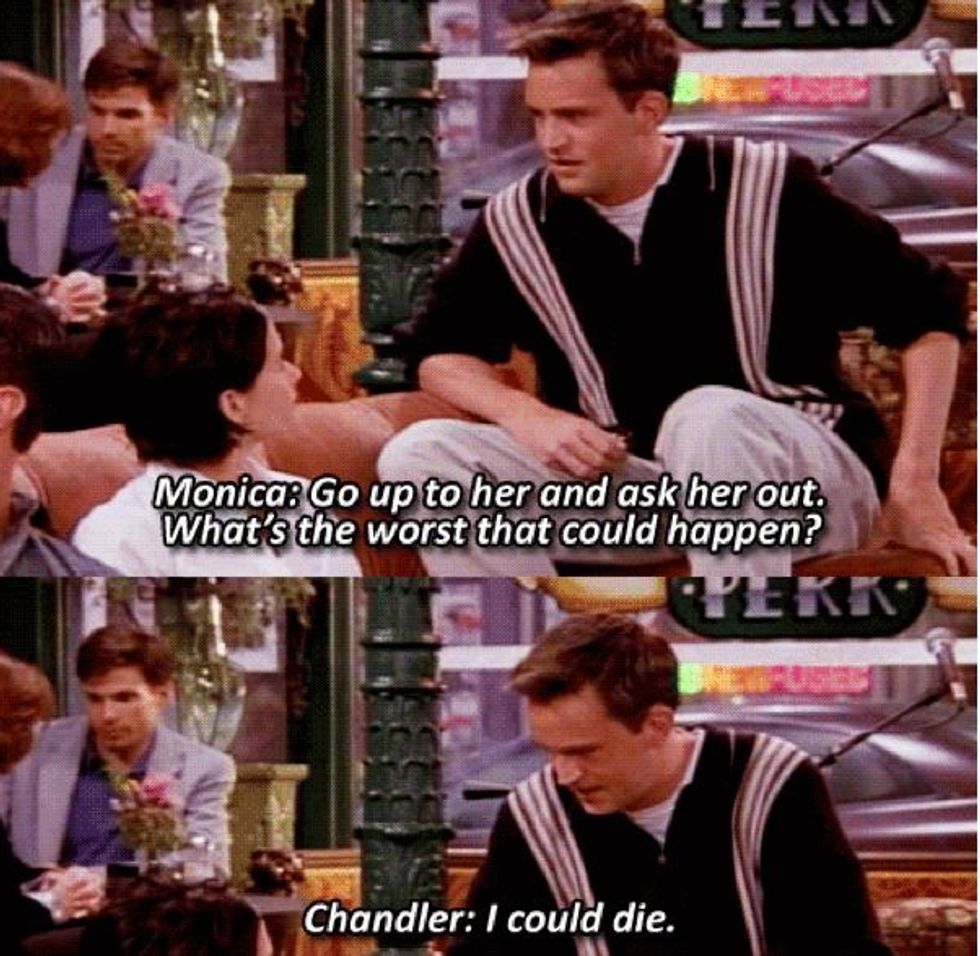 Ah! "Friends," a comical sitcom revolved around six best friends and their daily adult life experiences. Ross, Rachel, Joey, Phoebe, Monica and, of course, Chandler, are characters with very distinct moments of pure comedic gold.