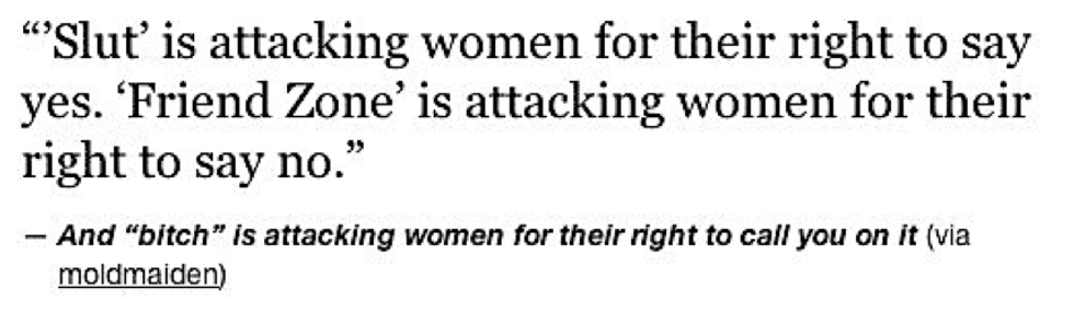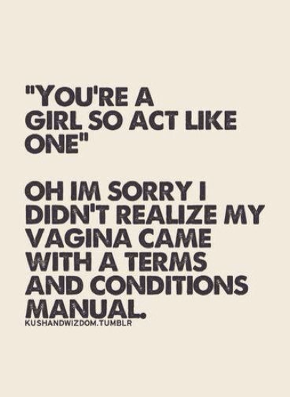 When I hear this phrase, I think of insecurity. Not on behalf of all my ladies out there, but on behalf of the men who use it. If someone tells you that you do something “like a girl” say “good because they’re f*cking awesome!” and leave it at that.