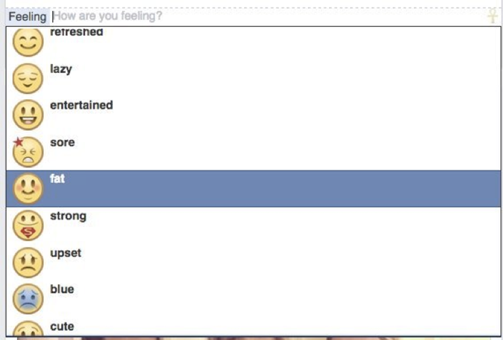Being that so many people struggle with having a positive body image, I am genuinely shocked that “fat” is considered a casual feeling. Beyond that, it is usually used in a joking mater. As if feeling bigger is funny for the person struggling with their body image