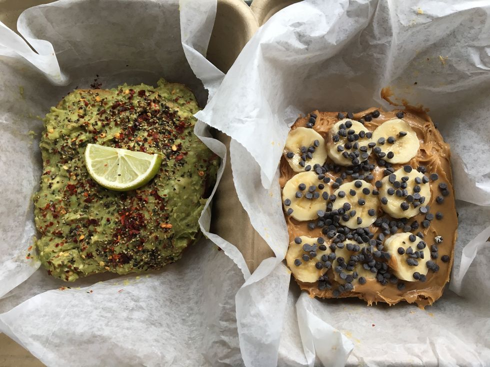 I was not a huge fan of their toast. It was COVERED in red pepper flakes, and I'm a huge baby. I liked the peanut butter one though!