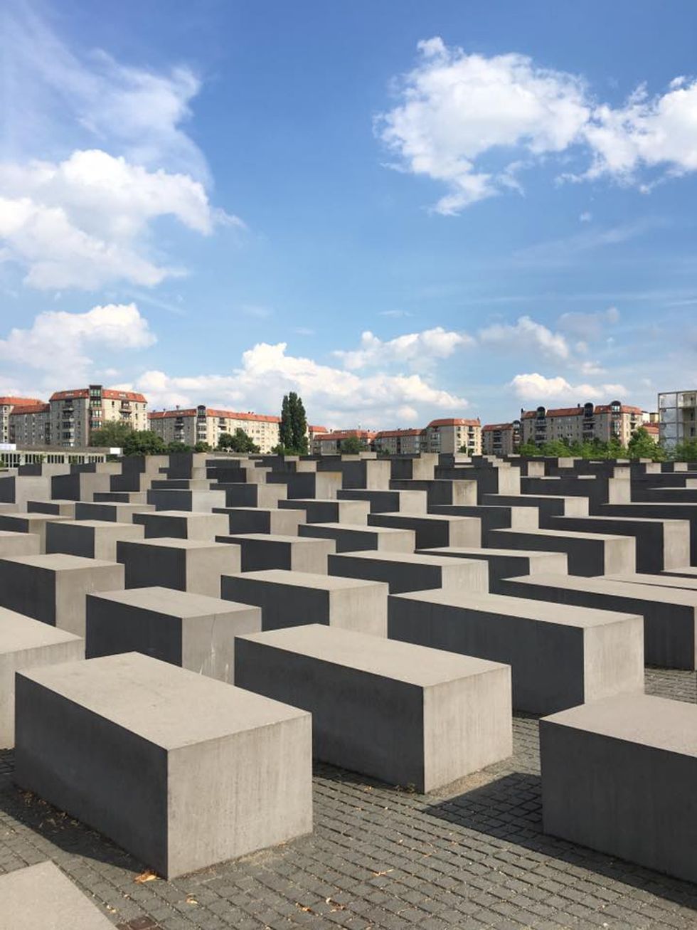 In Berlin, and there are many Holocaust memorials throughout Germany, there is a large park of of 2,711 stone slabs, shaped somewhat like coffins. It is silent inside as you walk down, where the ground is narrow and it is not flat. The stone slabs reach above you, and you are helpless in them. The Denkmal für die ermordeten Juden Europas, or the Memorial for the Murdered Jews of Europe, is a stark reminder of the country’s past.