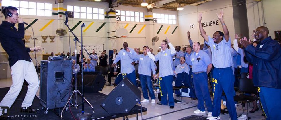 He even had the chance to perform for Solano State Prison's convicts. Seasoned men who had previously claimed that there were consequences to showing emotions in prison, nonetheless freely responded in a rare show of excitement as Sung created live music using his loop pedal.