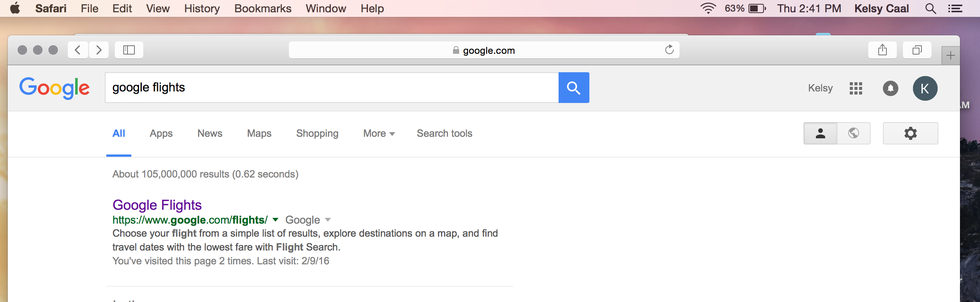 Many of us use google to search up quick answers to the difficult questions we have in life such as which drugstore mascara is the best, what the lyrics are to Rihanna’s new song “Work”, and the address to the closest McDonald's. But few of us know of the smart and money saving tool, Google Flights. Recently, I was looking for a website that had cheap flight tickets, so my smart solution was to go on Google and search “flights.” The first thing that appeared was something called Google Flights. I clicked on it and came to discover this sneaky search tool! When I found it I literally felt like it was hiding from me and didn’t want to be found. Honestly, a feeling as if a guy was cheating on me and I've never even been in a relationship. So if you love to travel and love yourself some good deals then Google will once again come to amaze you with its brilliance and answers to our laziness. Just follow the steps bellow and you're in for a quick adventure.
