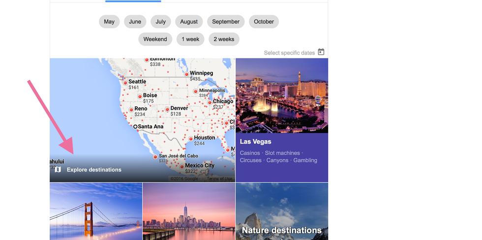 5. Now, let's say you don’t know where you want to go but you’re on a budget! No biggie! Just go back to step 2, scroll down, and click on “Explore destinations”!