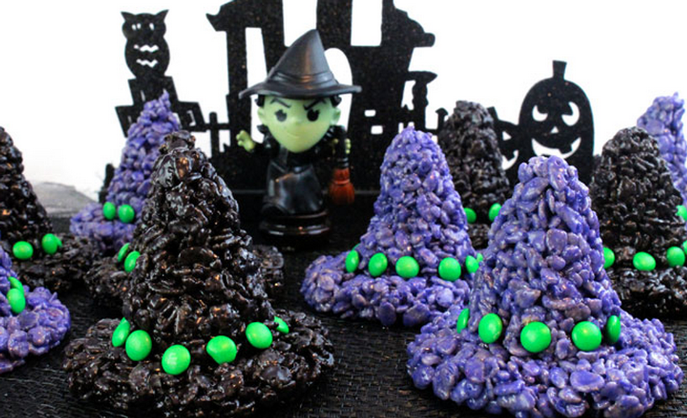 TwoSistersCrafting has a recipe for Rice Krispy Treats Witch Hats that will get you feeling immediately in the holiday spirit. The recipe is easy enough for even the most novice bakers to accomplish and calls for little ingredients. All you need is an oven, some pans, Kellogg’s Rice Krispie Cereal, marshmallows, butter, two kinds of food coloring and M&Ms.
