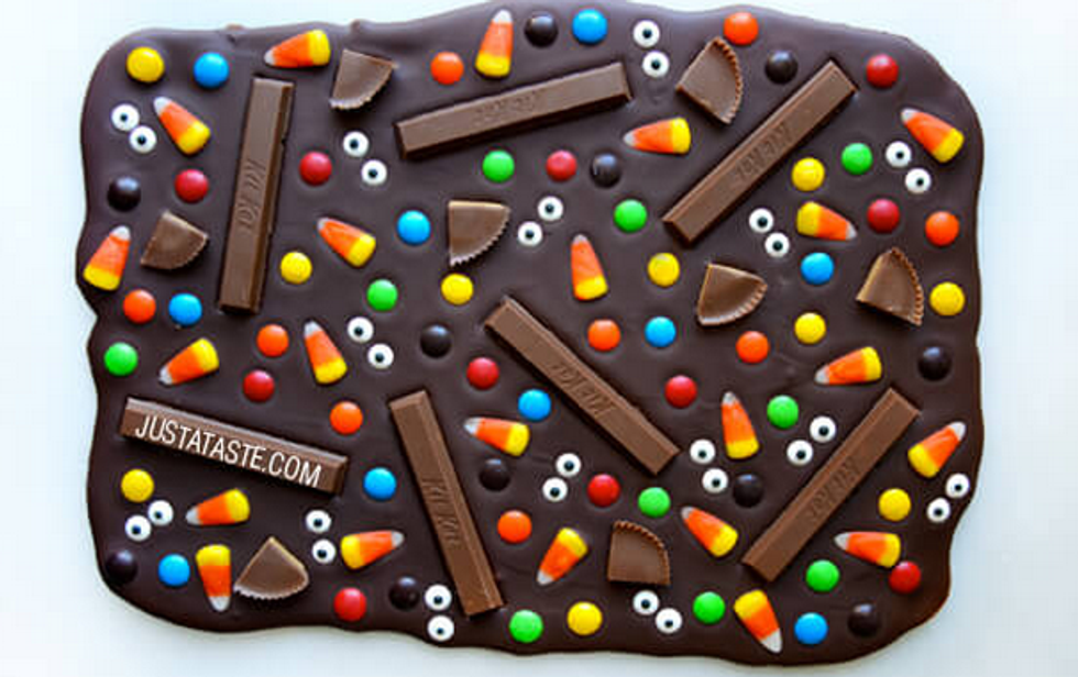 Get the recipe here: http://www.justataste.com/halloween-candy-bark/