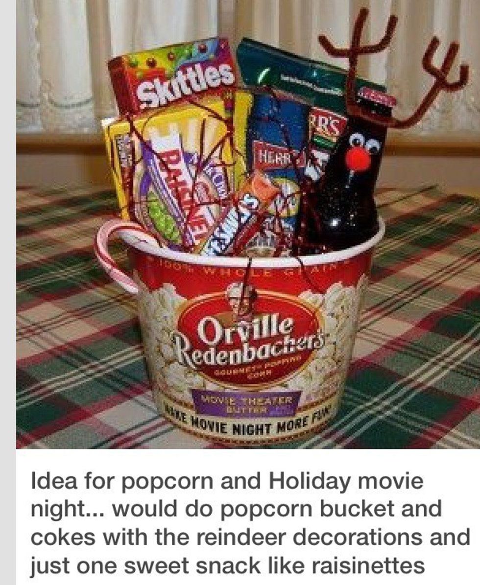 4. Do you know someone who loves to have movie nights? Bring the movie theater to their home with a bucket filled with anything you would find at the movie theater!