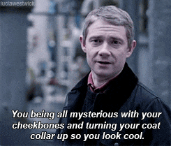 Here you see John Watson attempting not to swoon over Sherlock's bone structure. Obviously, he is failing.