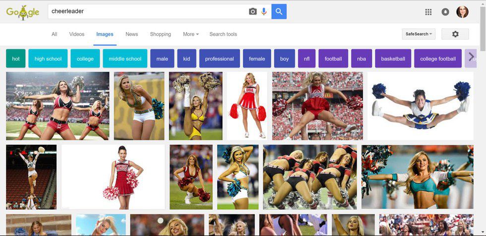 To further prove my point, simply search the word "cheerleader" on Google images. This is the result you will get: