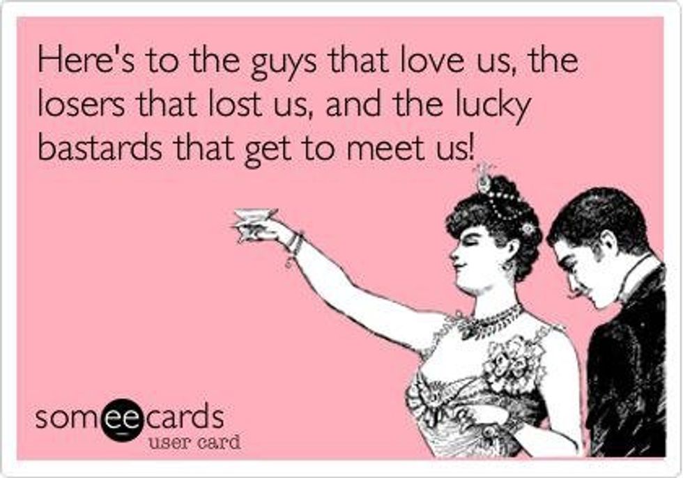 So, all you single ladies, throw your hands UP because you are strong, independent, beautiful, and don’t need a man to fulfill you...I'll cheers to that.