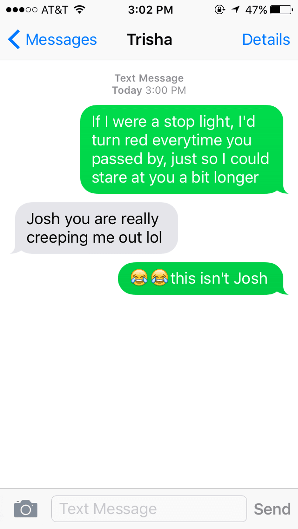 - My cousin Trisha. I share like no affection towards her, even though she knows I love her and she’s basically my sister. She didn’t even think I was the one who sent her the message, and directly accused my boyfriend! Sorry, Josh.