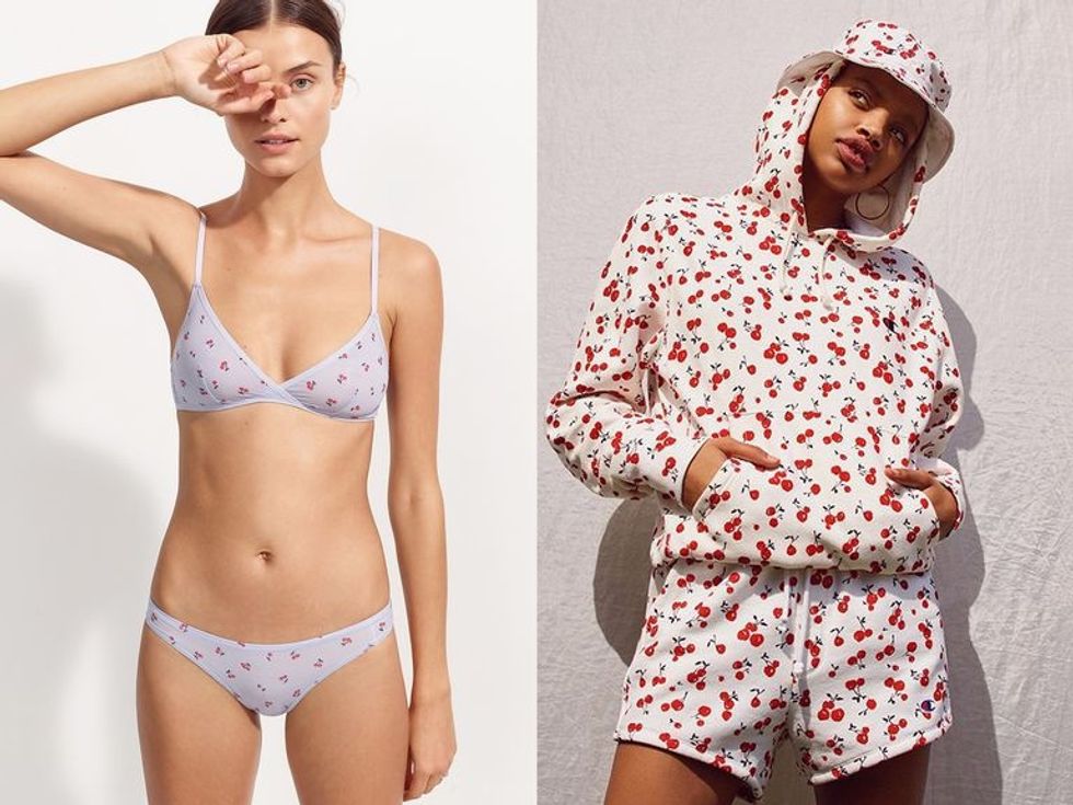 Early in the year, we must admit it was still rather freezing outside. In February, HVN decided to collaborate withsportswear brand Champion for some cherry-printed hoodies and matching sets to ease the cold transition into Spring. These designs popped up in Urban Outfitters, along with some other cherry-print lingerie sets courtesy of J.Crew.