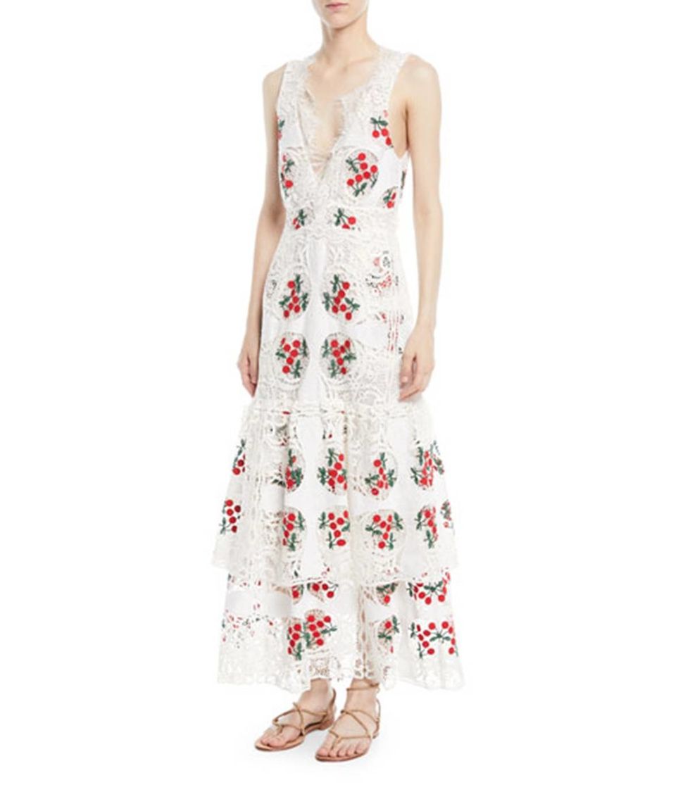 Soon after, these picnic-chic designs began popping up in blogger's Instagram feeds. Model Kaia Gerber caught on to the trend early the year before, and wore a cherry-print wrap blouse from Realisation Par. Emili Sindlev wore a similar straight-line dress.
