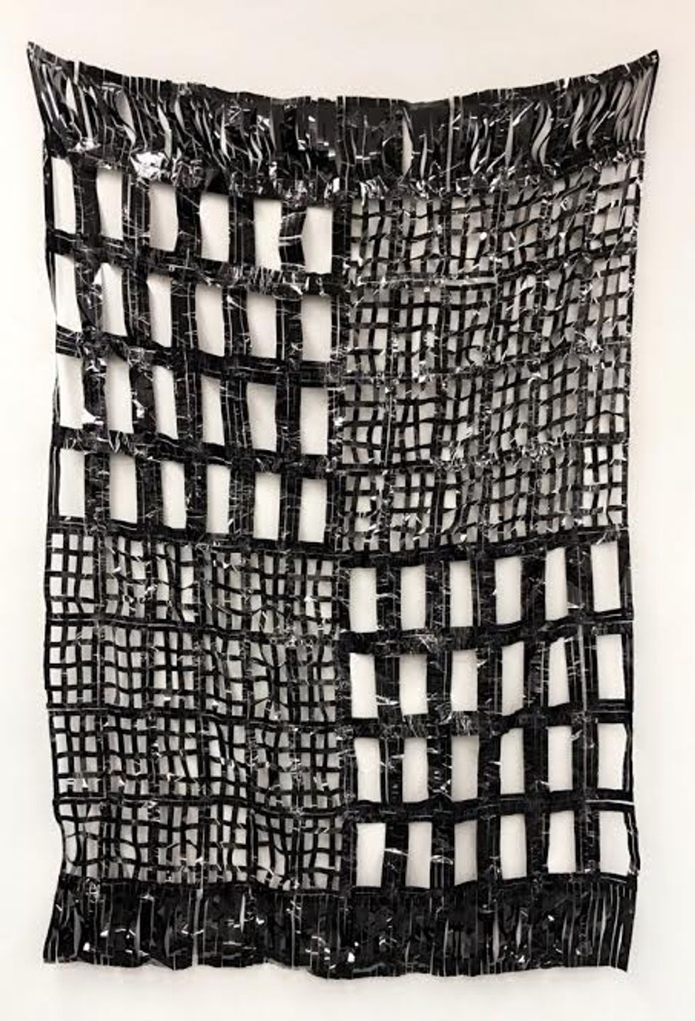 A connection to video is explored through Griffith's series Video Magic, in the making of blankets, quilts and pillows (all comfort objects) from VHS tape. An additional layer of significance embedded in the material relates to her mother's disease, Multiple Sclerosis. Just as the magnetic tape loses information and deteriorates from inside a VHS tape, the body does the same when suffering from MS.