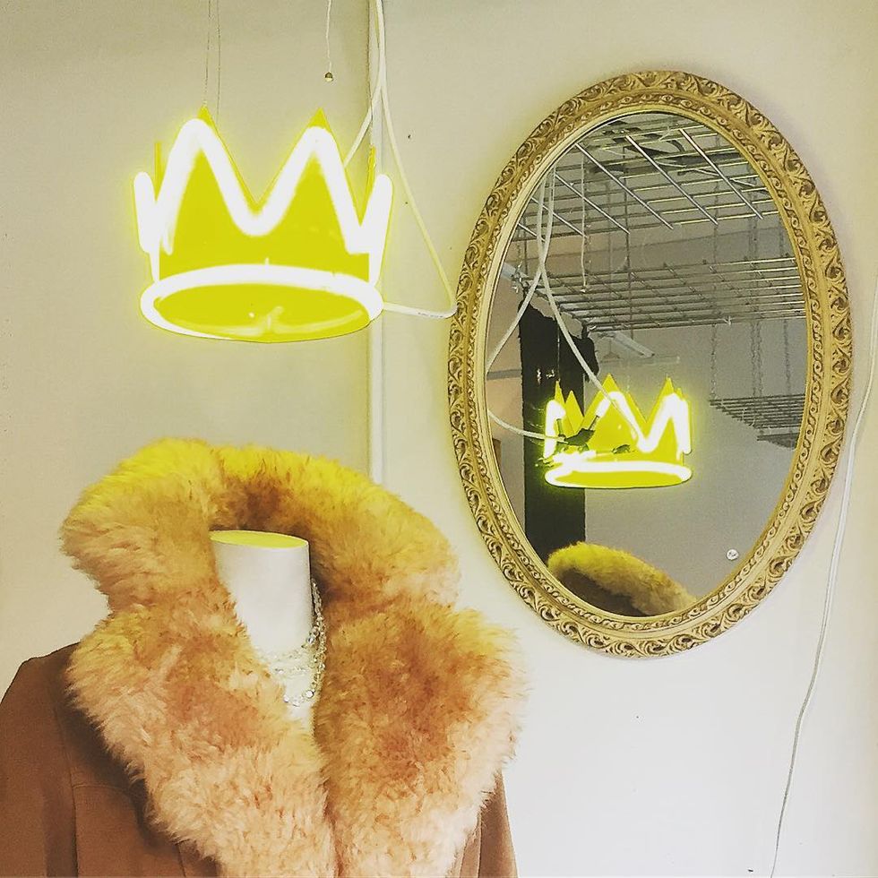 In a similar vein, his visual work promotes a desire within the viewer to be someone else or to hold a status above their own. Again, the viewer is a participant in the work, viewing themselves in a mirror where they are seen to be wearing a neon crown and decorative furs. The role-playing as fairy tale king is a sole activity, as suggested by the mirror. It is an instance in which the viewer is to look upon themselves as someone else, assumed to hold a position of power. This piece predating Instagram filters, allows passersby to imagine themselves as someone else if for just a moment, causing amusement so temporary one cannot help but be discontent when submitting their position of power to resume the role of their ordinary selves.