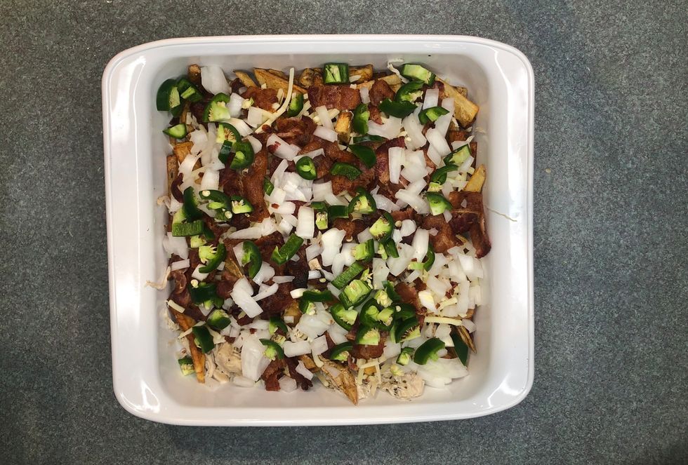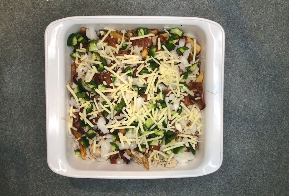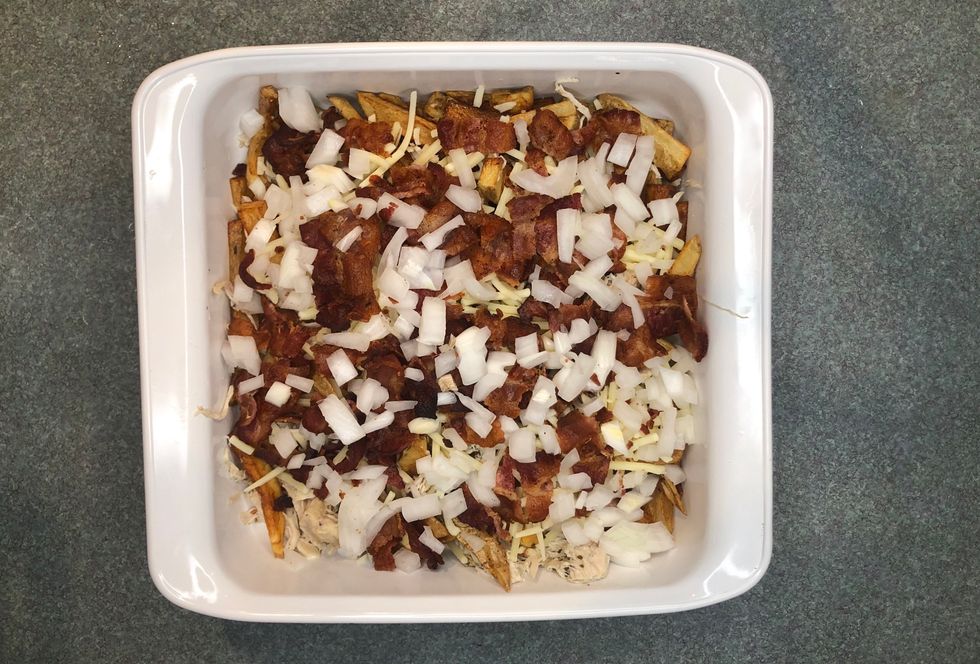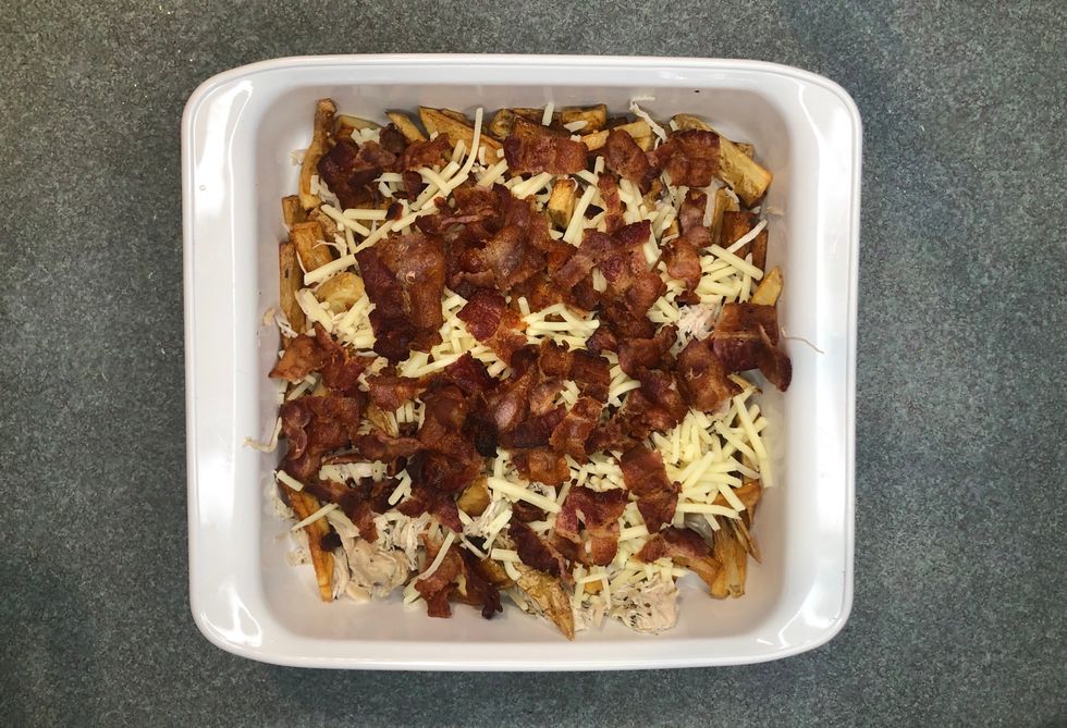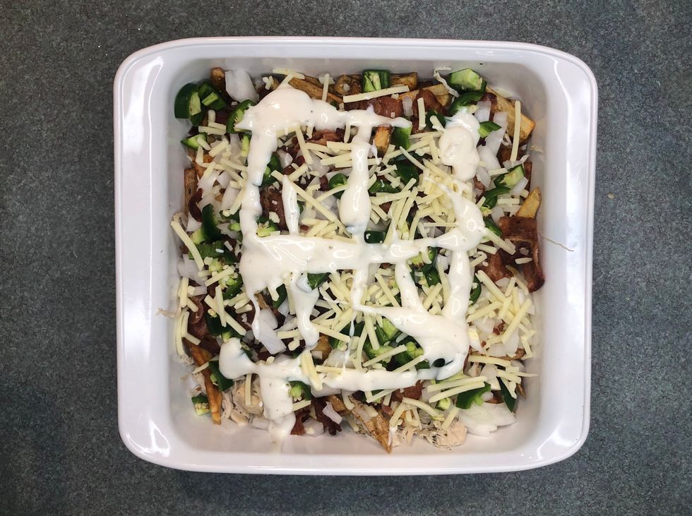 Hey, all you sports cuisine aficionados! Whether you are a football fan, girlfriend of a football fan or you simply love to recreate your favorite bar foods, look no further. I'm going to share with you these DANK chicken bacon ranch fries that I made for the 2020 NFL Draft. The recipe is idiot-proof and will make you feel like such a successful adult that you'll go bragging to your friends. I'll save you the fluff of some long blog post or the how the NFL managed to hold The Draft despite being quarantined. LET'S GET AT IT.