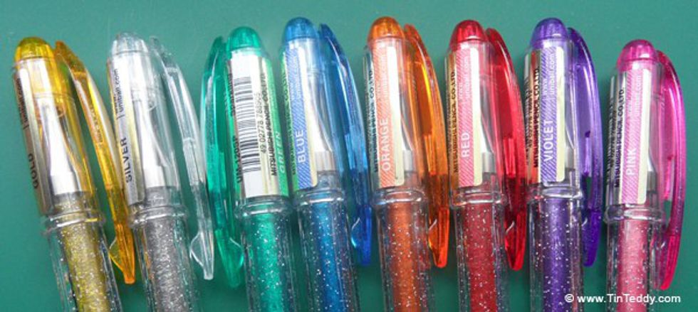 Oh how I miss gel pens. If I whipped out a gel pen in the middle of class today, I would probably get a 20 minute lecture on how the professor "can't read my lime green ink" or how "it's only professional to use blue or black."