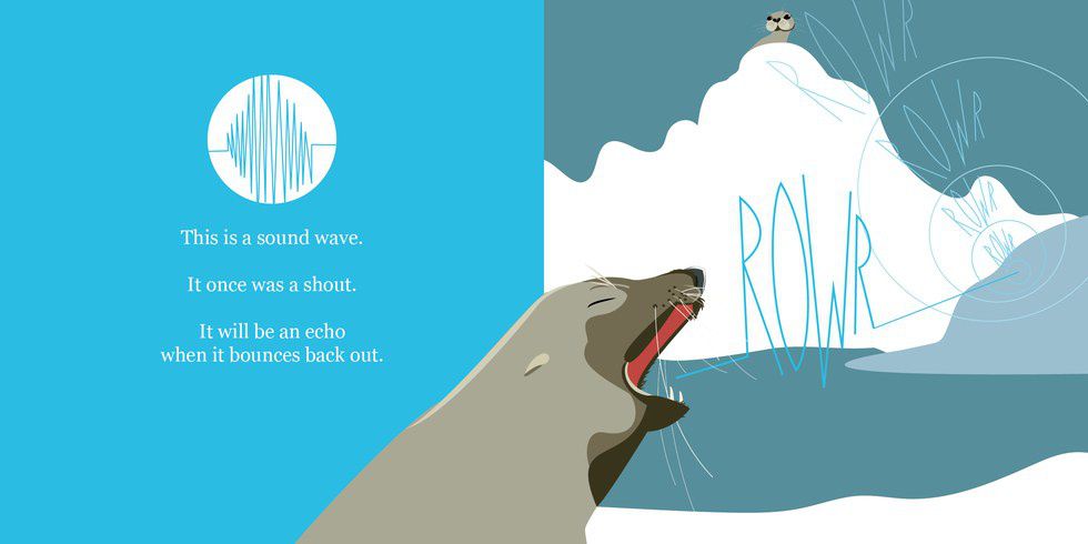 Our latest title, "Is, Was, Will Be" (brilliantly written by Lisa Combs), focuses on transitions and change. This particular book has been a challenge to my artistic style, as we wanted a more natural look rather than the whimsical approach of our previous books. One of the spreads in the book talks about a shout becoming an echo. This illustration stopped me dead in my tracks for nearly a week. How do you illustrate a sound wave becoming an echo, that is accurate, yet uncomplicated? I finally figured it out. Once that illustration was complete, I finished the rest of the drawings in just over a week. Here's the finished spread: