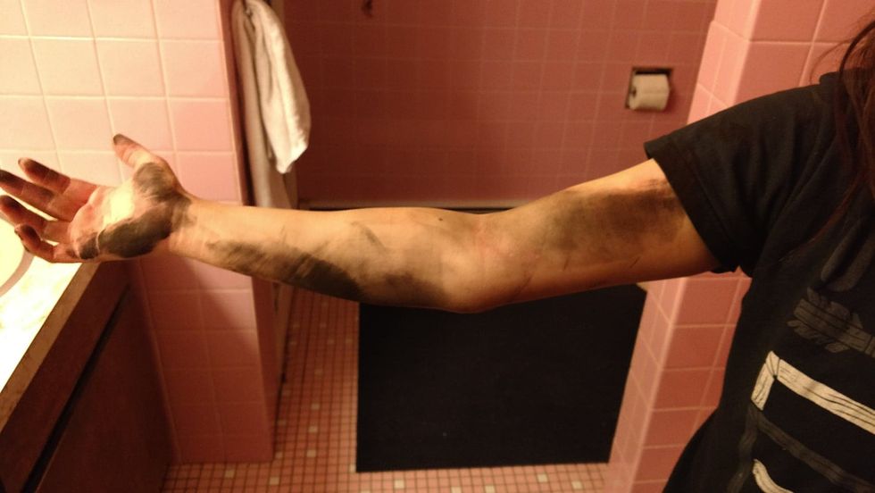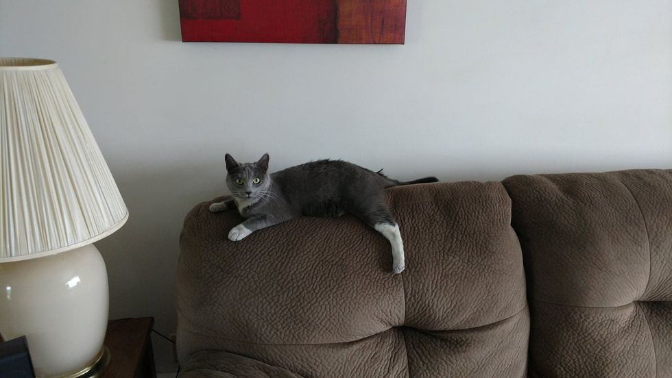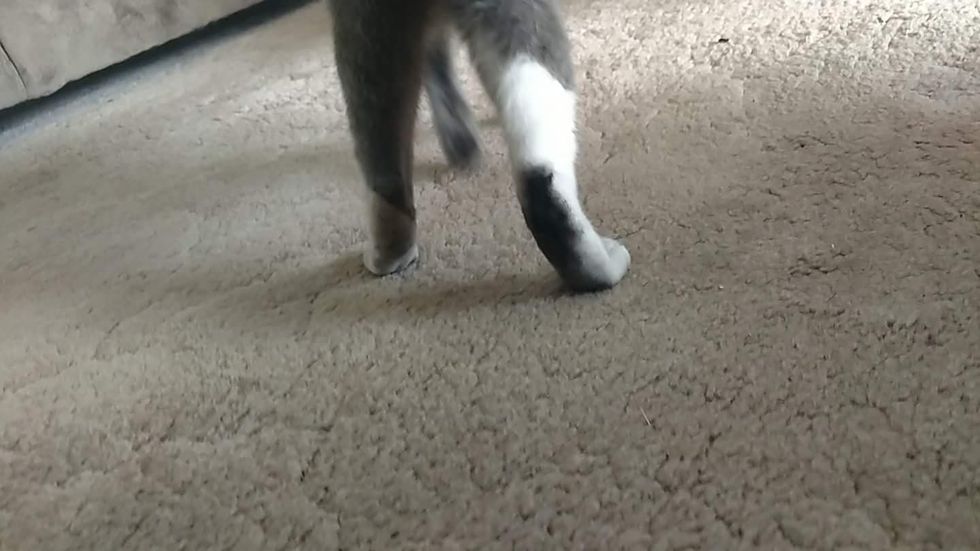 Taffy is an extremely skittish cat. While she was used to me, she was terrified of my grandpa and for the first few days, he never saw her, due to her hiding behind the couches, on top of the china cabinet, between the counter and the fridge, under the tv stand. Eventually I learned where all her hiding spots were and could check on her without much an issue. But by the fifth day, I couldn't find her. I checked everywhere, even the fireplace. It was about an hour after my grandfather got home that Taffy magically appeared. But something was off... her usual white paws were almost the same color as the rest of her fur.