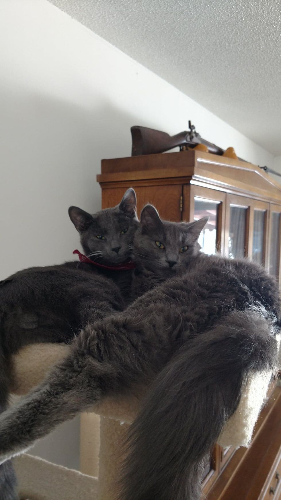 They had such beautiful gray coats, and were born in the chimney. I just had to name them appropriately, and that's how the Chimney kittens were born and got their names, Ash and Cinder.