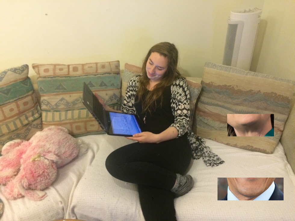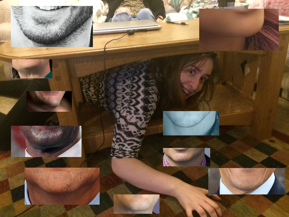 What are you doing under the table, Izzie? What are you doing under the table with all of those chins?