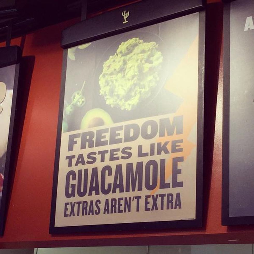 2. Guacamole is free with every entrée. Nobody is going to say "You know guac is extra?" to you at Qdoba, and that is enough reason in itself to opt for 'Doba over Chipotle (at least, as far as I'm concerned).