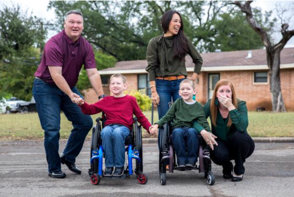 The reveal of the house was a tear-jerker for all watching. Calan and Lawson were presented with a new home that allows the boys access to all corners without any restriction to wheelchair accessibility. The Copp family had applied with Make-A-Wish Foundation previously--the organization added another surprise for the family by providing a wheelchair-friendly backyard for the boys. The new backyard consisted of a cool playhouse, a turf area to play ball, and a flipping-awesome race track that the two brothers immediately raced on.