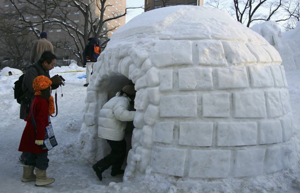 Folks...believe me, it ain't "unrealistic" (save for the floating coins)....it may be a little...difficult, but yes given the right environment, yes...a person can BUILD an igloo and hoard a bunch of chocolate coins in 'em! Possibly even hoard a giant chocolate star wrapped in gold foil in the middle or hide it!