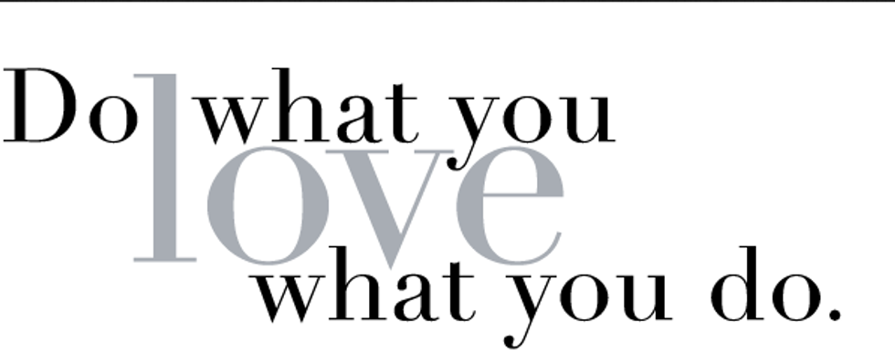 My parents have always taught my siblings and I that we should do what we love-no matter what it is and no matter what others say about it. They taught us that we'll be better at doing what we love because we'll be happier than we'd be otherwise. Well many can argue that it is crucial to find an occupation that pays well due to this economy, what if this means living every day for the rest of your life completely miserable? If we all chose to follow our passions and what makes us beam radiance, then we'd never have to work a day in our lives. Human beings need all types of occupations to live happily, peacefully, and healthy. Writers, doctors, performers, musicians, athletes, counselors, teachers, scientists, lawyers, poets, etc.-we need them all, so why not choose to follow your passion?