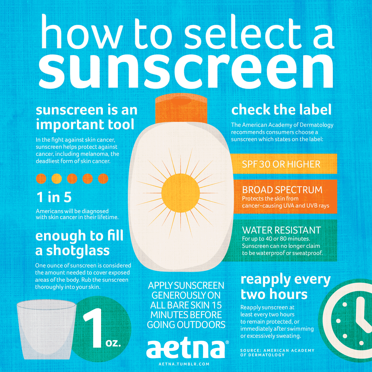 The regular use of sunscreen (SPF 15+) can help reduce an individual's chances of skin cancer by 50-73%. This will also slow the aging process, reduce wrinkles, and prevent sunburn, all of which sound great. This is all true if using the right sunscreen. SPF 15 is said to be able to block 93% of UV radiation from the sun, SPF 30 is said to block 97%, and SPF 50 98%. In addition to checking the SPF on your sunscreen bottle, make sure it also says broad spectrum protection. This ensures that you are being protected from UV and UVA rays, both of which are known causes of skin cancer.