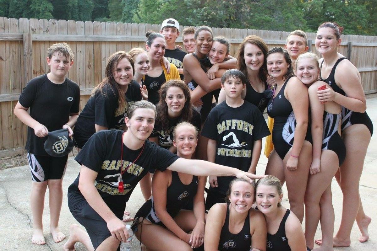 We started competing and traveling to different towns and building relationships with other teams. I was happy, but ultimately still believed I was a ball player not a swimmer by any mean sports. Eventually, I gave up on my favorite game in the eighth grade and began truly focusing on swimming. I won medals and trained day in and day with the dolphins and eventually the Gaffney High team. With the training, of course, came the wanting to quit and hating the sport. It comes with everything that is hard. I was pushed to keep swimming by my dad, who was there at every swim meet as an official and coach. I was pushed to stop wanting to quit and just enjoy the hard work and competition; and that ultimately led to me loving the sport.